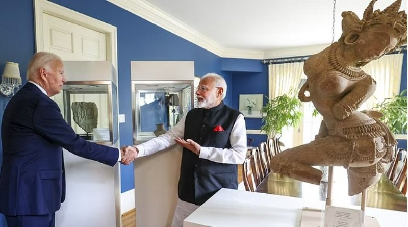 प्रधानमंत्री श्री नरेन्द्र मोदी की अमरीका की यात्रा के अवसर पर अमरीकी पक्ष ने भारत से चोरी की गयी अथवा तस्करी के माध्यम से ले जायी गयी 297 प्राचीन वस्तुओं की वापसी में सहायता की है। इन्हें शीघ्र ही भारत को वापस लौटा दिया जाएगा। डेलावेयर के विलमिंगटन में द्विपक्षीय बैठक के दौरान प्रधानमंत्री श्री नरेन्द्र मोदी और राष्ट्रपति बाइडेन को प्रतीकात्मक रूप से कुछ चुनिंदा वस्तुएं सौंपी गईं। प्रधानमंत्री ने इन कलाकृतियों की वापसी में सहयोग के लिए राष्ट्रपति बाइडेन को धन्यवाद दिया। उन्होंने कहा कि ये पुरावशेष न केवल भारत की ऐतिहासिक भौतिक संस्कृति का हिस्सा थे, बल्कि भारतीय सभ्यता एवं चेतना का आंतरिक आधार भी थे।