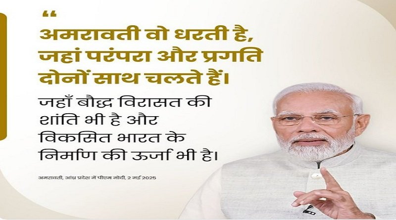 प्रधानमंत्री श्री नरेन्द्र मोदी ने आज आंध्र प्रदेश की राजधानी अमरावती में 58,000 करोड़ रुपये से अधिक की लागत वाली अनेक विकास परियोजनाओं का उद्घाटन, शिलान्यास और राष्ट्र को समर्पित किया। प्रधानमंत्री ने कहा कि अमरावती की पवित्र भूमि पर खड़े होकर, वे केवल एक शहर नहीं बल्कि एक सपने को साकार होते हुए देख रहे हैं- एक नया अमरावती, एक नया आंध्र। प्रधानमंत्री ने कहा, “अमरावती एक ऐसी भूमि है जहाँ परंपरा और प्रगति साथ-साथ चलती है, जो बौद्ध विरासत की शांति और एक विकसित भारत के निर्माण की ऊर्जा दोनों को समेटे हुए है।” उन्होंने कहा कि आज परियोजनाओं की आधारशिला और उद्घाटन किए गए हैं और ये परियोजनाएँ केवल कंक्रीट के ढांचों के लिए नहीं हैं बल्कि आंध्र प्रदेश की आकांक्षाओं और भारत विकास की कल्पना की मजबूत नींव हैं। प्रधानमंत्री मोदी ने भगवान वीरभद्र, भगवान अमरलिंगेश्वर और तिरुपति बालाजी की पूजा-अर्चना करते हुए आंध्र प्रदेश के लोगों को अपनी शुभकामनाएं दीं। उन्होंने मुख्यमंत्री श्री चंद्रबाबू नायडू और उपमुख्यमंत्री श्री पवन कल्याण को भी अपनी शुभकामनाएं दीं।