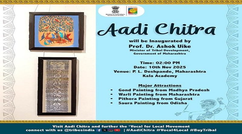 मुंबई, 9 नवंबर, 2025 : प्रधानमंत्री श्री नरेंद्र मोदी के दूरदर्शी नेतृत्व में, भारत सरकार का जनजातीय कार्य मंत्रालय कला, संस्कृति, उद्यमिता और सतत आजीविका को एकीकृत करने वाली पहलों के माध्यम से जनजातीय समुदायों के समग्र विकास और सशक्तिकरण को आगे बढ़ा रहा है। इसी भावना के साथ मंत्रालय, भारतीय जनजातीय सहकारी विपणन विकास संघ लिमिटेड (ट्राइफेड) के सहयोग से राष्ट्रीय जनजातीय चित्रकला प्रदर्शनी “आदि चित्र” का आयोजन कर रहा है।