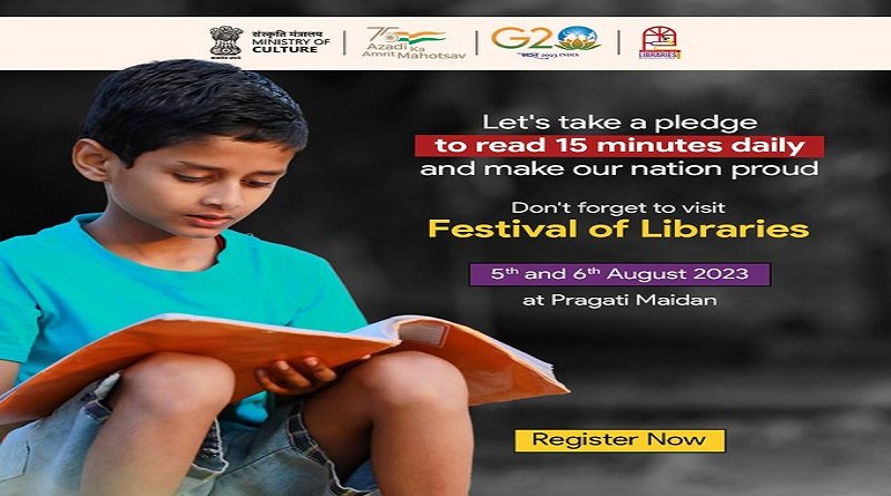 राष्ट्रपति श्रीमती द्रौपदी मुर्मु ने आज (5 अगस्त, 2023) नई दिल्ली में ‘पुस्तकालय महोत्सव’ का उद्घाटन किया। यह महोत्सव, संस्कृति मंत्रालय द्वारा आयोजित किया जा रहा है, जिसका उद्देश्य पुस्तकालयों के विकास और डिजिटलीकरण को बढ़ावा देना तथा पढ़ने की संस्कृति को विकसित करना है।