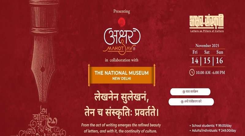 अक्षर महोत्सव 2025 में अक्षर कला के माध्यम से एक मनोरम यात्रा पर निकलने के लिए तैयार हो जाइए। यह एक राष्ट्रीय उत्सव 14 से 16 नवंबर 2025 तक राष्ट्रीय संग्रहालय को रोशन करेगा। राष्ट्रीय संग्रहालय, संस्कृति मंत्रालय द्वारा, द कैलिग्राफी फाउंडेशन के साथ साझेदारी में आयोजित यह कार्यक्रम “अक्षर-संस्कृति – संस्कृति के स्तंभ के रूप में अक्षर” के बैनर तले भारत की गहन शास्त्रीय विरासत का उत्सव मनाता है।