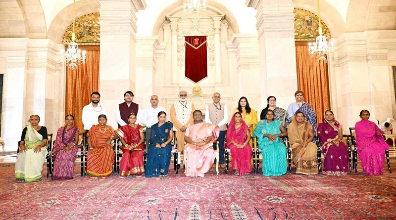 राष्ट्रपति ने प्रदर्शनी का अवलोकन किया और कलाकारों से व्यक्तिगत रूप से बातचीत की। उन्होंने अपने संबोधन में, कलाकारों के समर्पण की प्रशंसा करते हुए कहा: “ये कलाकृतियाँ भारत की आत्मा को दर्शाती हैं – प्रकृति से हमारा जुड़ाव, हमारी पौराणिक कथाएं और हमारा सामुदायिक जीवन। मैं इस बात की बहुत सराहना करती हूं कि आप सभी इन अमूल्य परंपराओं को कैसे संजोए हुए हैं।”